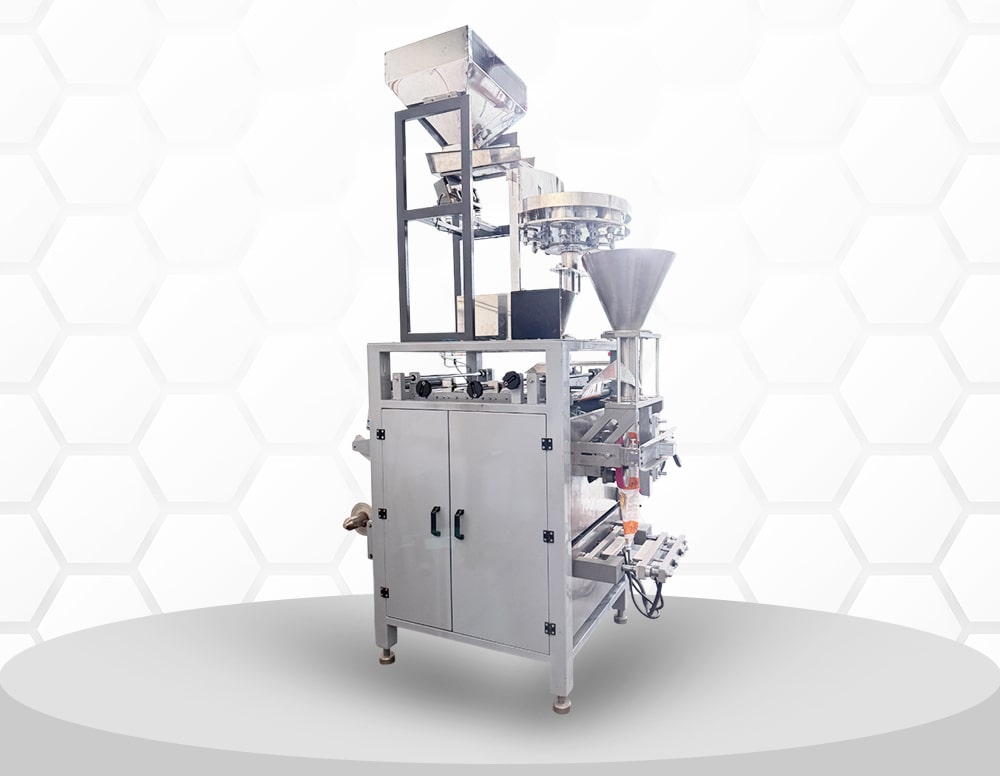 The Volumetric Cup Filler paired with a VFFS machine offers a simple yet highly efficient solution for packaging free-flowing powders and granules. Using interchangeable volume cups, it ensures fast and accurate dosing with minimal maintenance. Perfect for products like sugar, salt, grains, and detergent granules, this system is ideal for businesses seeking consistent output with low operational complexity.